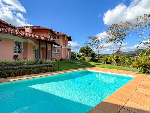 Casa à venda no Golfe, um dos bairros mais nobres e desejados de Teresópolis, cercado por natureza exuberante, tranquilidade e muito verde. Inserida em um cenário privilegiado, essa residência se destaca por oferecer privacidade, conforto e uma conexão única com o ambiente ao redor. Com arquitetura de inspiração colonial e acabamentos rústicos cuidadosamente escolhidos, a casa transmite elegância, aconchego e um estilo atemporal. Os detalhes em madeira e a integração dos ambientes criam uma atmosfera acolhedora, ideal para quem busca uma residência charmosa e funcional ao mesmo tempo. Projetada para receber família e amigos com conforto, a casa conta com amplos espaços internos e externos. São sete quartos bem distribuídos, sendo quatro suítes, todos com excelente iluminação natural e vistas agradáveis para o jardim. As salas são amplas e integradas, incluindo sala de estar, sala de jantar e sala de visitas, proporcionando ambientes perfeitos para convivência e momentos especiais. A residência ainda dispõe de uma biblioteca charmosa, escritório elegante, cozinha funcional com despensa, área de serviço e varanda, além de banheiros com jardins de inverno que trazem ainda mais luz natural e contato com a natureza. Na área externa, o grande destaque é o amplo gramado que envolve a casa, um verdadeiro convite para lazer ao ar livre, contemplação e momentos de descanso. O espaço gourmet com churrasqueira, a piscina e a integração com o jardim tornam o ambiente ideal para confraternizações, celebrações e fins de semana em família. Como diferencial exclusivo, a casa oferece uma vista encantadora para o Golf Club, garantindo um cenário único, silencioso e extremamente agradável. Uma propriedade pensada para quem valoriza espaço, natureza, conforto e sofisticação em um dos endereços mais valorizados da cidade. Agende sua visita e venha conhecer essa casa especial com a Blair House Imóveis.