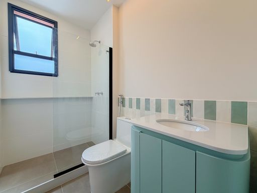 O quarto é amplo, arejado e muito bem iluminado, também com acesso à varanda, trazendo ainda mais charme e funcionalidade. O banheiro possui móveis planejados e ótima ventilação, garantindo praticidade e conforto.