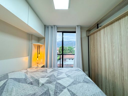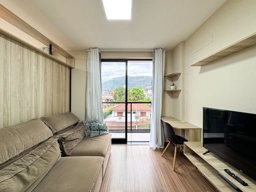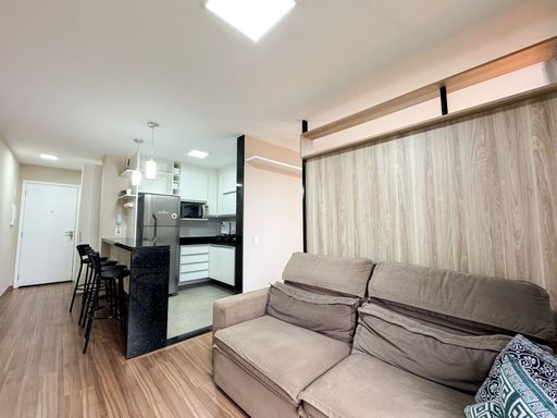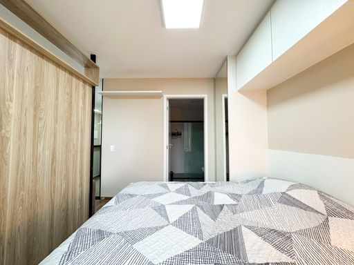 O imóvel é de frente, no estilo loft/quarto e sala, muito bem distribuído, com varanda espaçosa, banheiro social e cozinha integrada à sala, criando um ambiente moderno, funcional e aconchegante. Conta com móveis planejados, decoração de bom gosto e excelente aproveitamento de espaço, perfeito para entrar e morar, sem precisar investir em absolutamente nada.