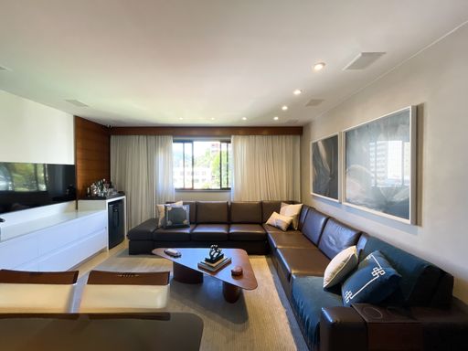 O apartamento conta com 02 quartos com armários sendo 01 suíte e varanda, sala ampla e bem planejada e com uma vista incrível, banheiro social, cozinha planejada, área de serviços e dependência de empregada com banheiro.