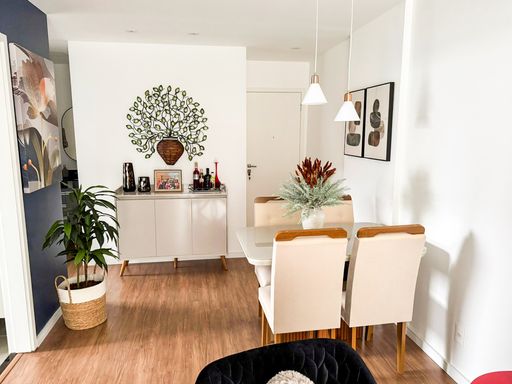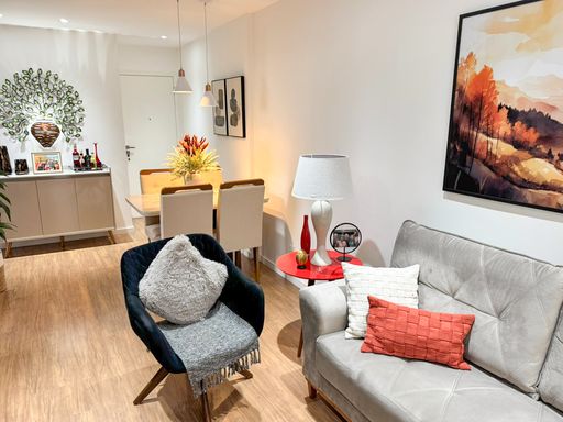 O imóvel possui 62m², com 2 quartos, sendo 1 suíte, banheiro social, cozinha americana integrada, varanda e estilo moderno, com móveis planejados e semimobiliado, pronto para você se mudar e aproveitar cada detalhe.