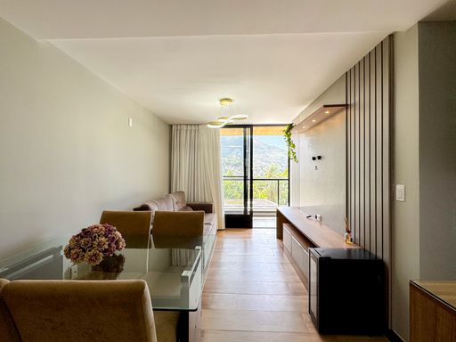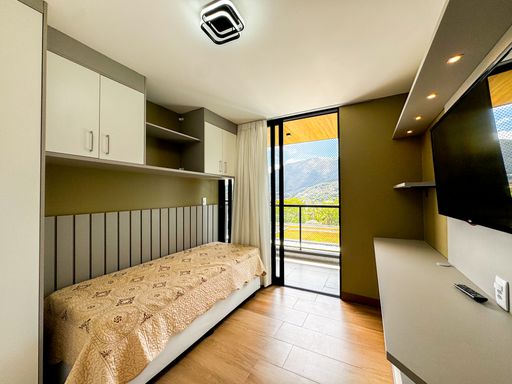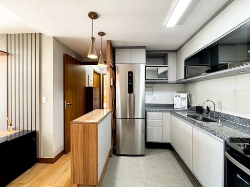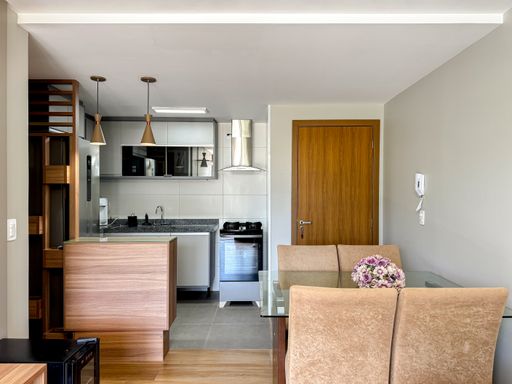 O apartamento é porteira fechada, com todos os móveis incluídos no valor. Conta com móveis planejados e mobiliário de muita qualidade, pensados para oferecer conforto, funcionalidade e elegância em cada ambiente. São dois quartos, sendo uma suíte, sala e cozinha integradas, além de uma varanda com churrasqueira e outra varanda com hidromassagem, perfeitas para momentos de lazer e relaxamento.