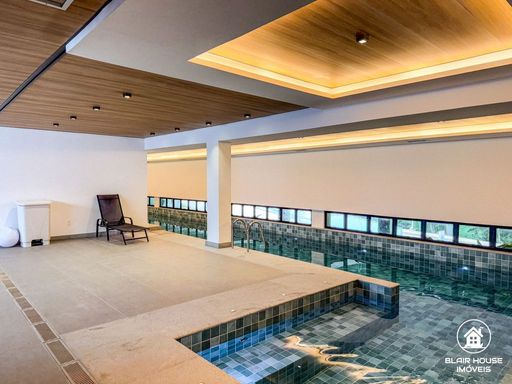 A área de lazer é um grande diferencial, contando com piscinas descoberta e coberta, normais e aquecidas, restaurante, spa, salão de jogos, academia totalmente equipada, sauna, quadra poliesportiva e quadra de tênis. O condomínio ainda oferece estacionamento, portaria 24 horas e segurança total, garantindo praticidade e tranquilidade no dia a dia.