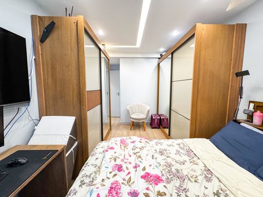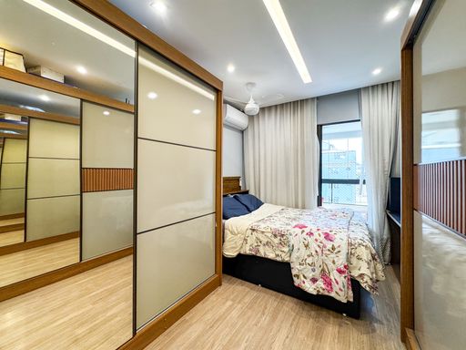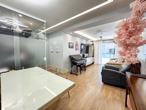O apartamento conta com 112m2 divididos em 2 quartos sendo 1 suíte com varanda, 2 sala em dois ambientes, banheiro social, cozinha, área e banheiro de serviço e uma ótima varanda gourmet que pode ser fechada com persiana de vidro e churrasqueira!