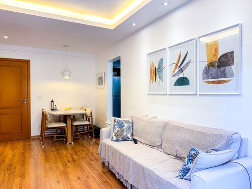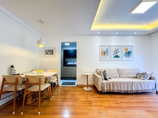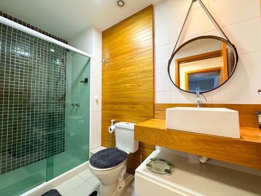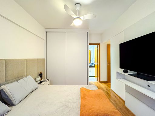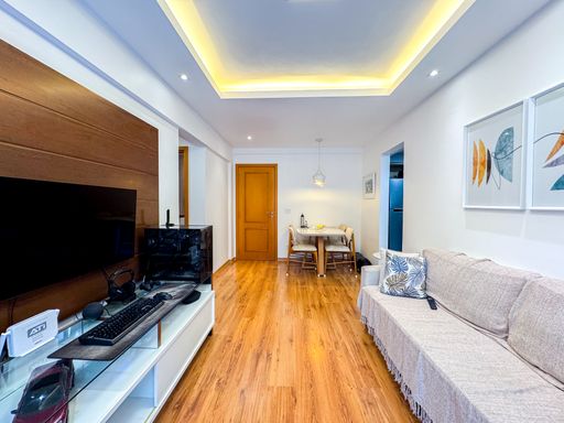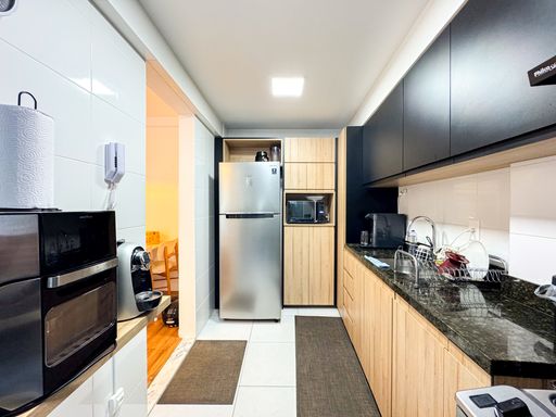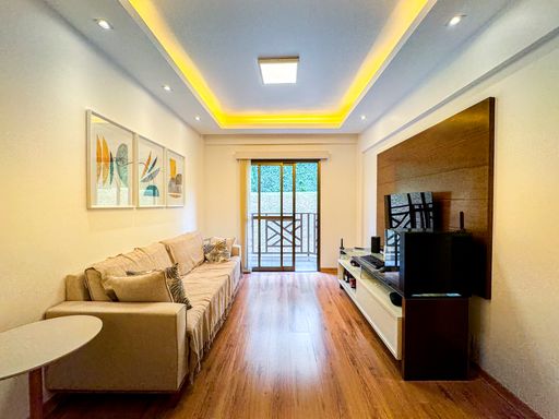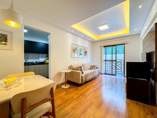 Apartamento composto por 2 quartos, sendo 1 suíte, com ambientes muito bem distribuídos e totalmente mobiliado, contando com móveis planejados de excelente bom gosto, que unem sofisticação, funcionalidade e conforto. A sala é ampla, bem iluminada e integrada a uma varanda com vista para a mata, proporcionando tranquilidade e contato com a natureza. A cozinha é prática e planejada, com área de serviço independente, atendendo perfeitamente às necessidades do dia a dia.