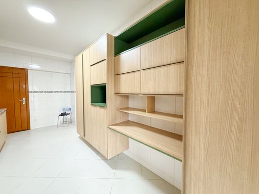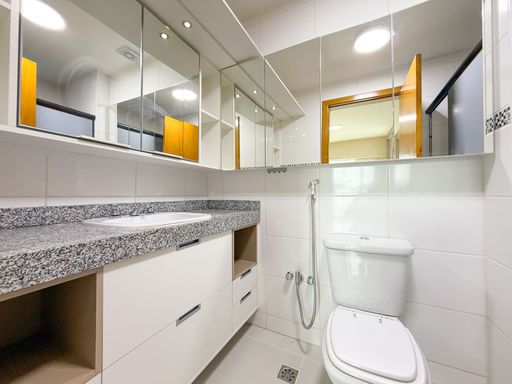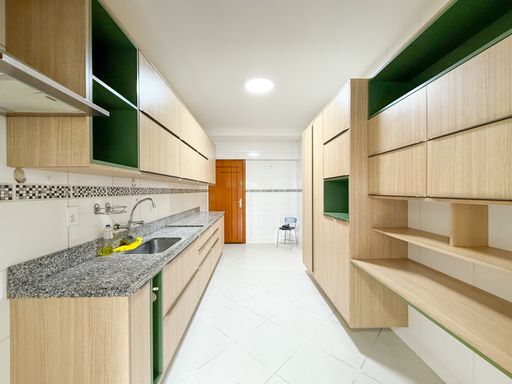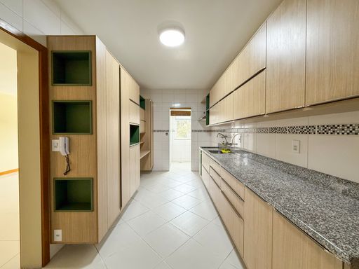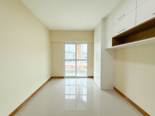 O imóvel conta com 2 quartos sendo 1 suíte com varanda integrada e armários planejados, ampla sala dividida em 2 ambientes, banheiro social, cozinha com armários planejados, área e banheiro de serviço.
