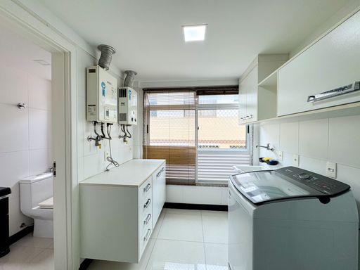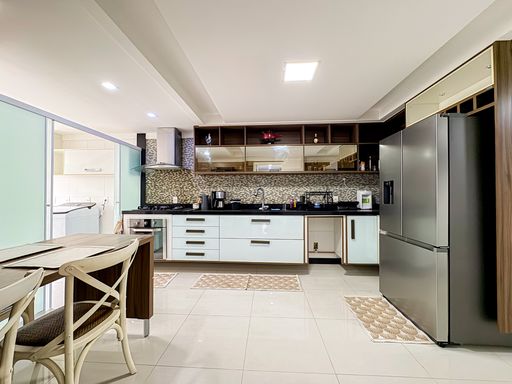 A cozinha é ampla, com despensa generosa e área de serviço bem arejada, atendendo perfeitamente às necessidades do dia a dia.