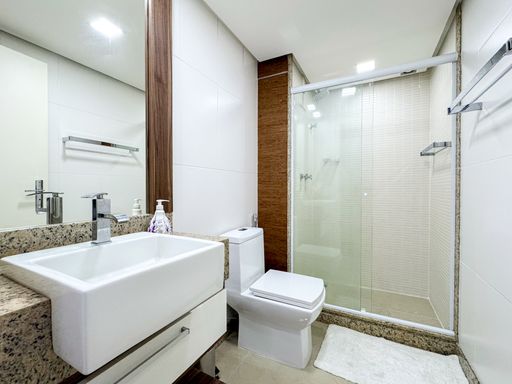 O apartamento possui 143 m² muito bem distribuídos, com ambientes amplos, confortáveis e bem iluminados. São 3 quartos grandes, sendo 1 suíte, além de banheiro social e lavabo, oferecendo funcionalidade e conforto para toda a família.