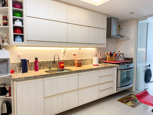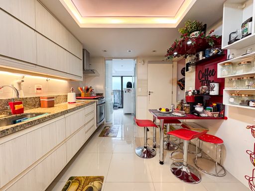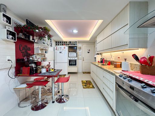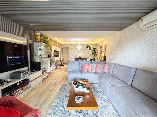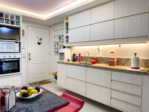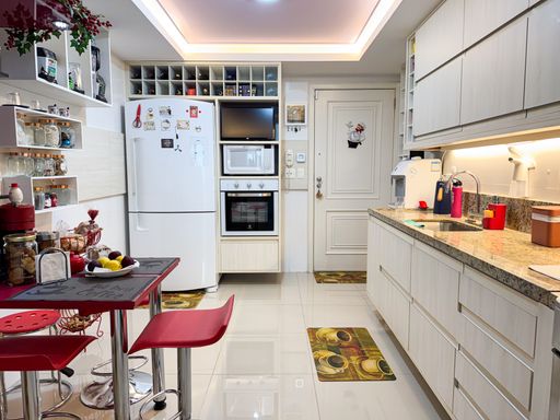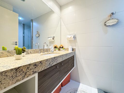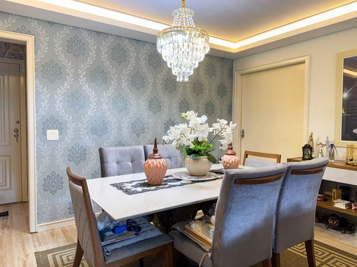 Contém 102m2 divididos em: 3 quartos sendo 1 suíte, banheiro social, sala dividida em 2 ambientes integrada com varanda gourmet, lavabo, cozinha, área de serviço e banheiro de serviço.
