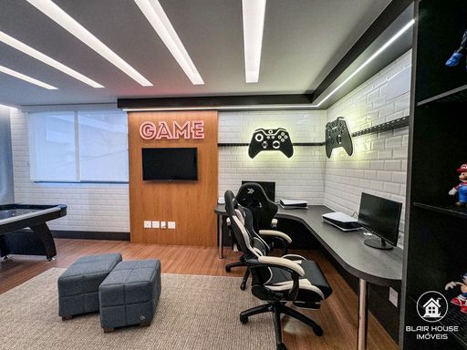 O condomínio é recente e conta com infraestrutura completa de lazer, incluindo piscina aquecida, sauna, academia equipada, salão de festas com churrasqueira e forno de pizza, brinquedoteca, sala gamer e bicicletário, além de duas vagas de garagem na escritura.