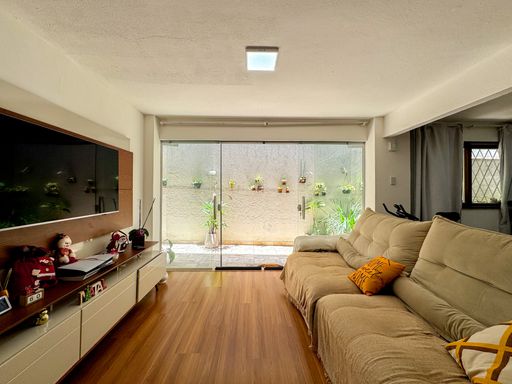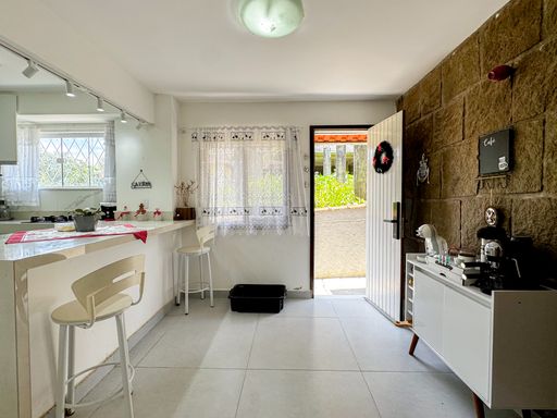 O interior é espaçoso e bem distribuído: são 4 quartos, incluindo uma suíte acolhedora, além de um escritório ideal para home office. A sala em dois ambientes é perfeita para quem gosta de receber, e a cozinha com ilha, dividida em dois espaços, traz funcionalidade e charme ao dia a dia. O imóvel ainda conta com dependência completa de empregada com entrada independente, garantindo ainda mais comodidade.
