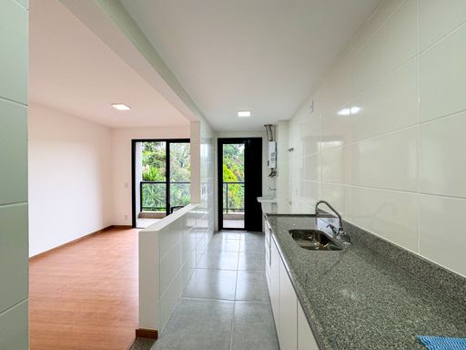 Possui varanda, sala ampla com excelente entrada de luz natural, cozinha em conceito aberto integrada à lavanderia, trazendo funcionalidade e um visual contemporâneo. São 2 quartos, sendo 1 suíte, todos com ótima ventilação e bom aproveitamento dos espaços, além de banheiro social com acabamentos modernos.