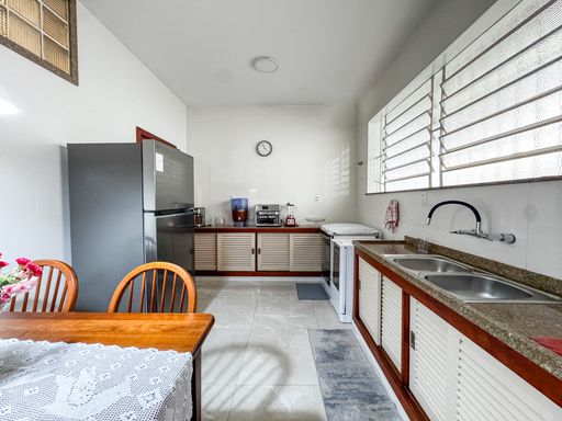 Nos fundos, um verdadeiro refúgio: amplo terreno de 1000m² com pomar, espaço gourmet com churrasqueira, campo de futebol, lavanderia e uma casa de caseiro com quarto e sala. Na frente, um ótimo quintal ajardinado e 3 vagas de garagem completam este belo imóvel.