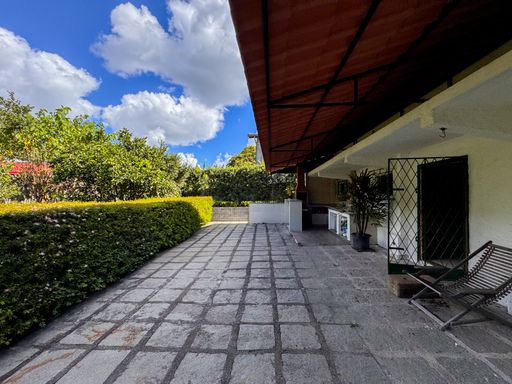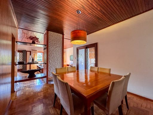 O imóvel é linear e conta com um generoso espaço de terreno, onde um charmoso pomar com árvores frutíferas traz ainda mais contato com a natureza e bem-estar ao dia a dia. Além disso, a propriedade possui uma casa independente, completamente equipada, com cozinha, dois quartos, banheiro e uma confortável sala em dois ambientes, ideal para receber familiares, hóspedes, etc.
