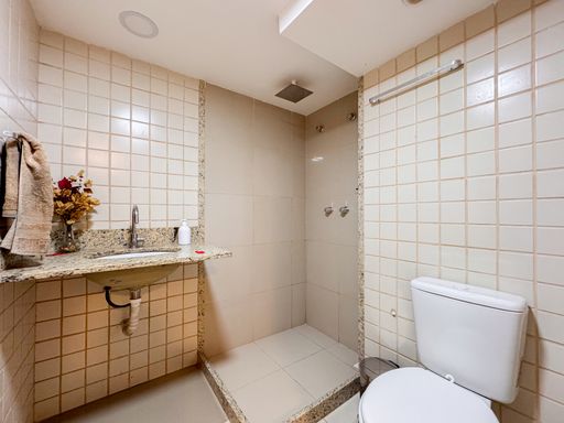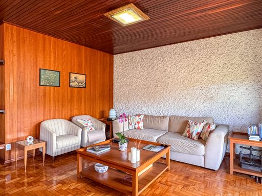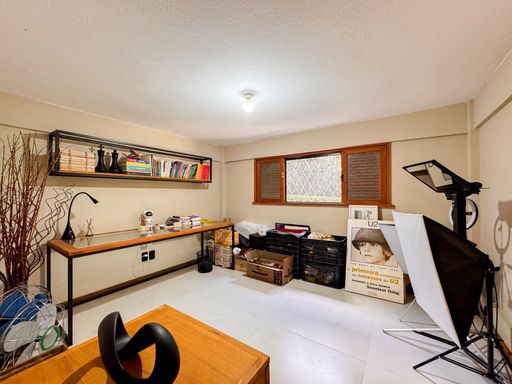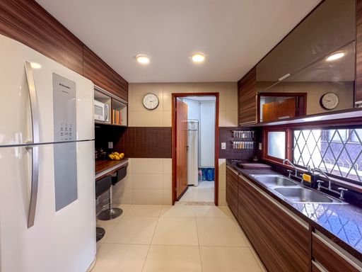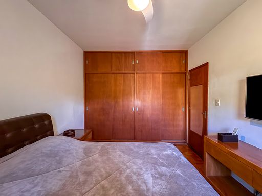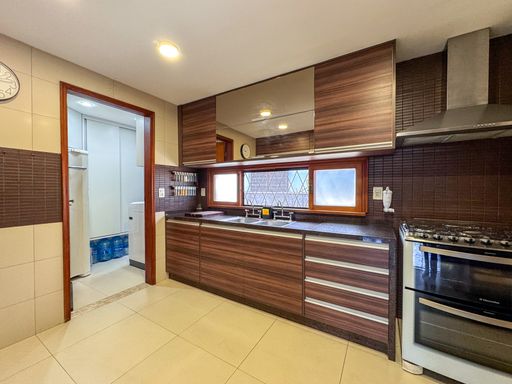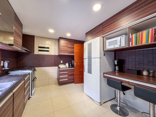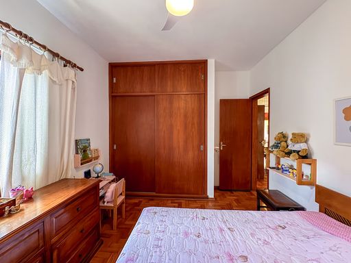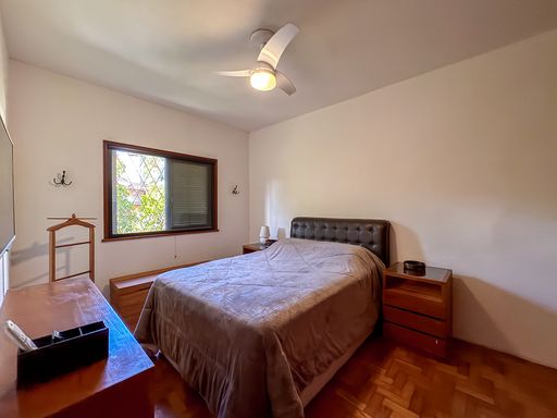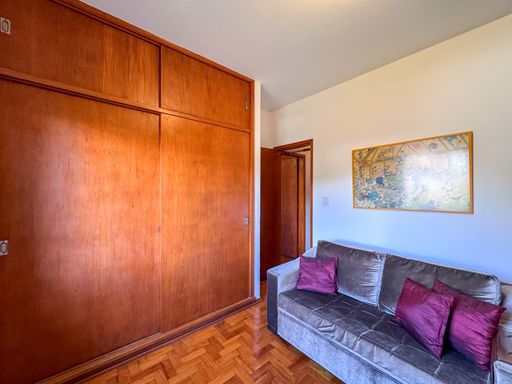 Na área íntima, o imóvel dispõe de três quartos, todos com janelas que garantem excelente vedação acústica e térmica, proporcionando conforto em todas as estações do ano. Há ainda um banheiro social que atende perfeitamente aos quartos, além de um lavabo para maior comodidade. Os armários embutidos em madeira maciça agregam charme, durabilidade e elegância aos ambientes.