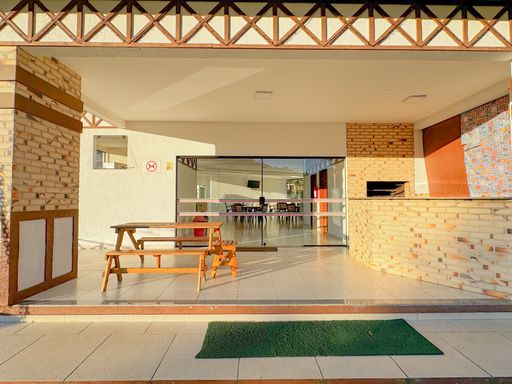 Na área íntima, o imóvel dispõe de uma suíte com closet e mais um quarto. Ambos possuem portas de vidro que se abrem para os fundos da casa, integrando os dormitórios à área de lazer, que conta com churrasqueira, perfeita para momentos de convivência. Há ainda um pequeno gramado na lateral e na parte frontal da casa, ideal para horta, jardim ou outros projetos paisagísticos.