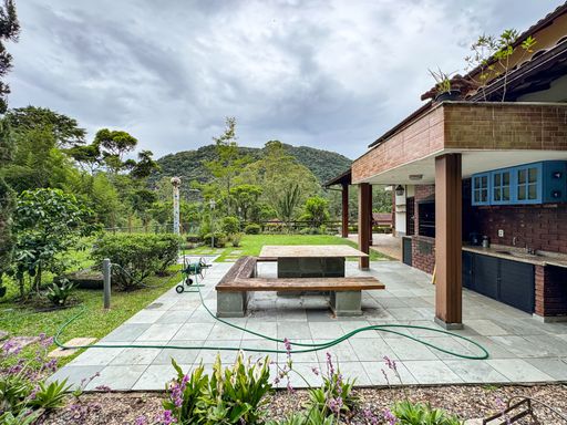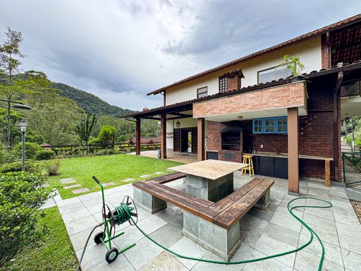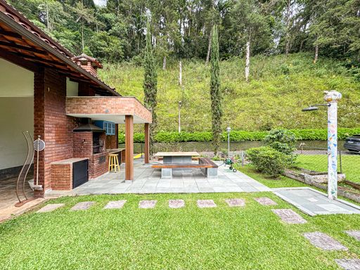 No segundo pavimento, encontram-se três suítes espaçosas, todas com varanda e vista livre para a natureza, proporcionando conforto e privacidade. A área externa é igualmente encantadora, com gramado bem cuidado e espaço gourmet ideal para receber amigos e familiares.