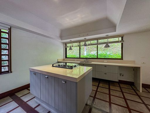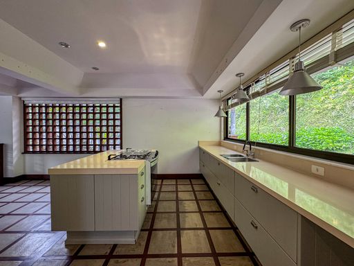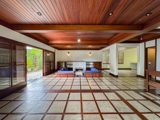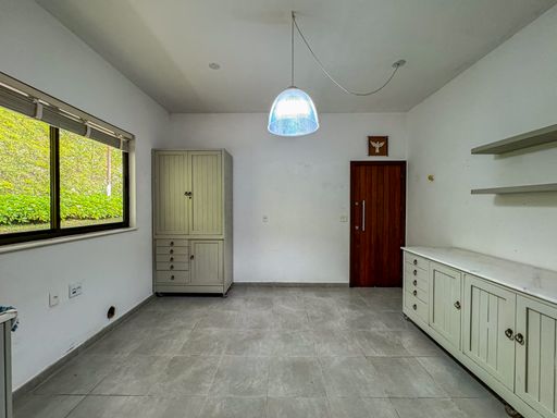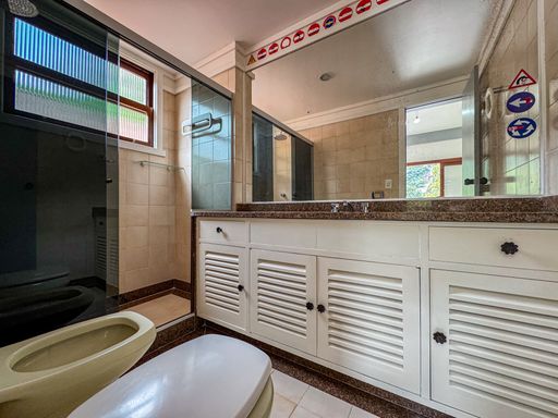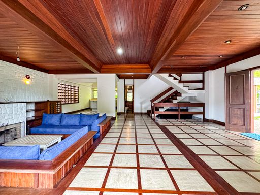O terreno possui 2.024m² e a residência foi projetada com acabamentos de altíssima qualidade e móveis planejados que unem elegância e funcionalidade. A casa é duplex: no primeiro pavimento, uma ampla sala dividida em dois ambientes com lareira e bar, cozinha americana integrada, lavabo e uma generosa área de serviço.