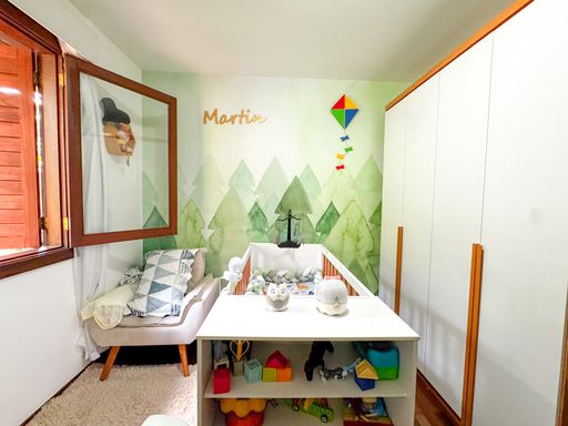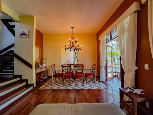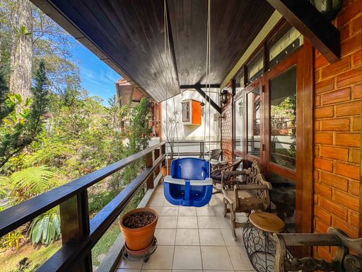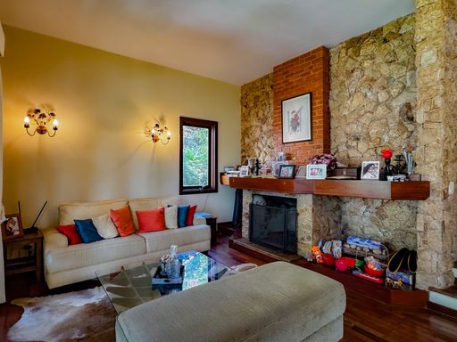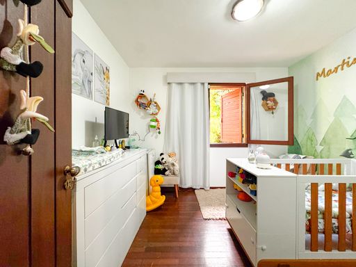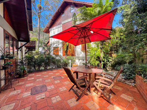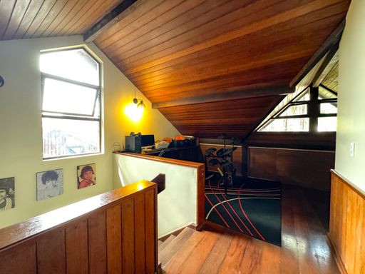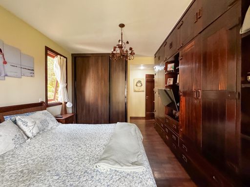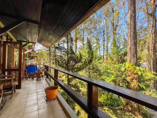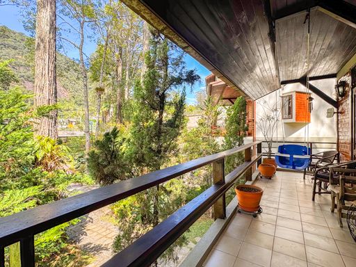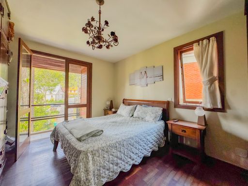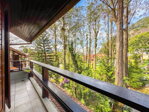 A casa, de quatro pavimentos, foi pensada para proporcionar praticidade e qualidade de vida. São quatro quartos, sendo uma suíte, duas cozinhas equipadas com móveis planejados, além de um sótão no quarto andar que pode ser facilmente revertido em mais um dormitório, escritório ou espaço multiuso. O imóvel ainda conta com duas varandas amplas nos andares superiores, que oferecem vista privilegiada para as montanhas e para o verde da região, assegurando privacidade e contemplação da paisagem. O charme se completa com detalhes como o piso de taco, que traz aconchego aos ambientes, uma área externa com churrasqueira, banheira de hidromassagem e duas vagas de garagem.