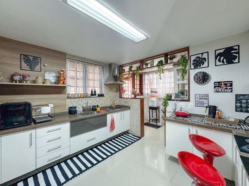 Na área externa, destaque para a charmosa área gourmet com cozinha privativa — perfeita para reunir amigos e familiares com conforto e estilo. A casa possui ainda duas vagas de garagem cobertas.