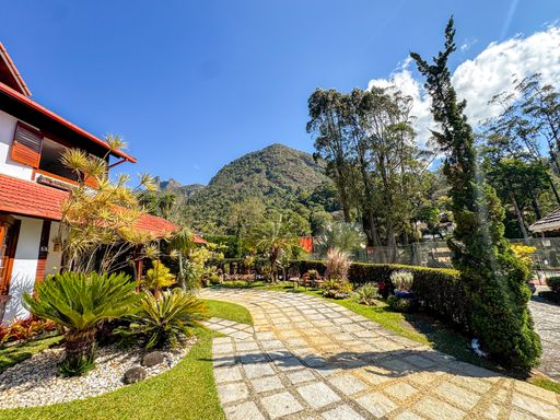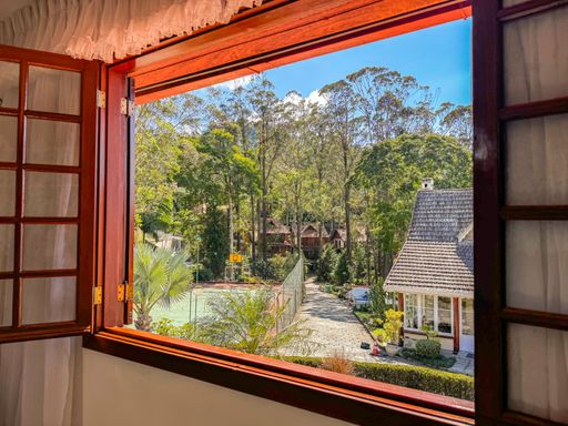 Localizada em um dos condomínios mais encantadores da cidade, esta casa é um verdadeiro refúgio em meio à natureza. Com estilo francês e um projeto que valoriza o charme e a tranquilidade da serra, o condomínio oferece um ambiente arborizado, com um riacho que o corta, transmitindo uma sensação constante de paz e bem-estar.