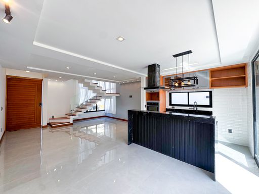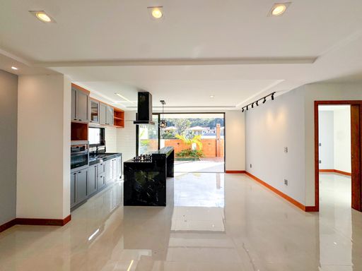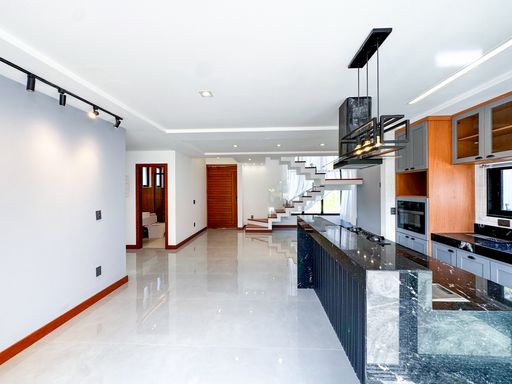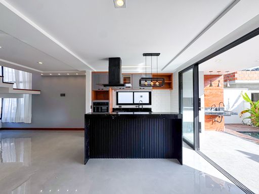 A casa possui 4 quartos, sendo 2 suítes amplas, totalizando 4 banheiros. A área social é integrada e impressiona: uma sala espaçosa e iluminada se conecta harmoniosamente com a cozinha americana, que já conta com móveis planejados de excelente bom gosto, assim como os banheiros.