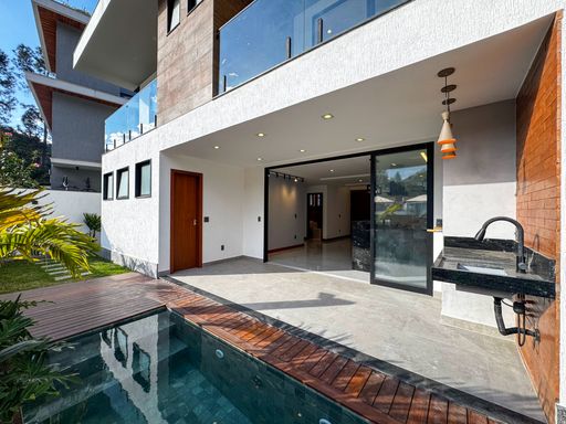 Apresentamos essa espetacular casa moderna, recém-construída e em sua primeira locação, localizada em um dos condomínios mais exclusivos e desejados de Teresópolis, no bairro da Posse.