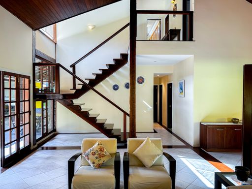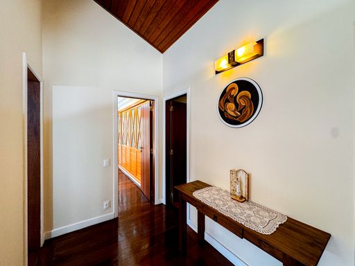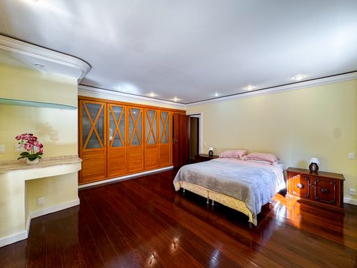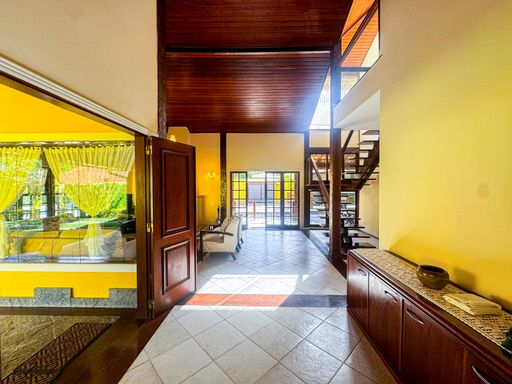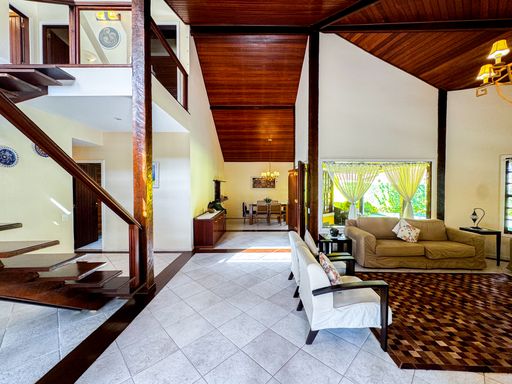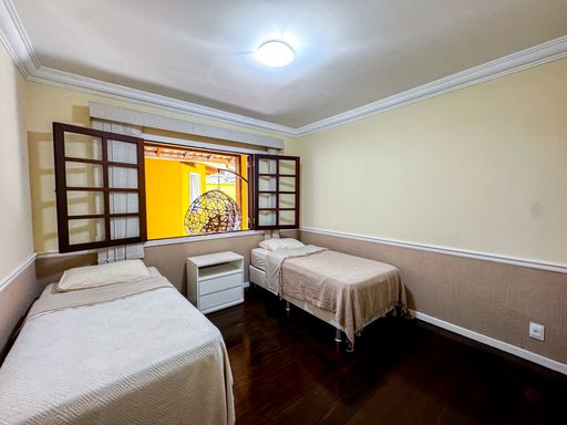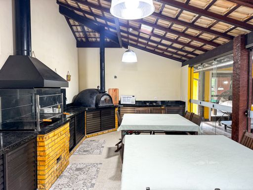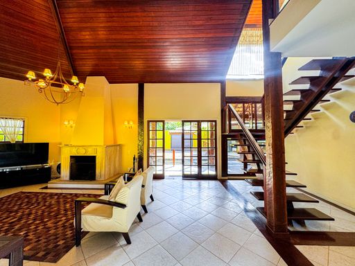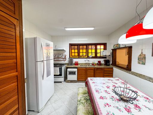 A casa é duplex, e possui 7 quartos, sendo 4 suítes, totalizando 7 banheiros, todos distribuídos de forma funcional e confortável. A sala ampla, com pé-direito alto, proporciona imponência, excelente iluminação natural e integração com os demais ambientes. A cozinha é totalmente equipada, com móveis planejados, unindo praticidade e elegância.