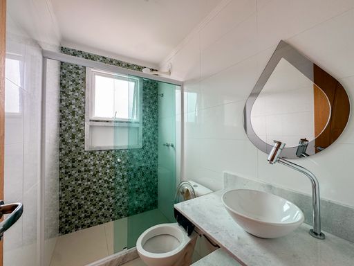 No segundo pavimento estão os 4 quartos, sendo dois deles com varanda. A suíte principal possui closet e varanda privativa, além de uma bela vista para a natureza. Há ainda um banheiro social que atende os demais quartos.