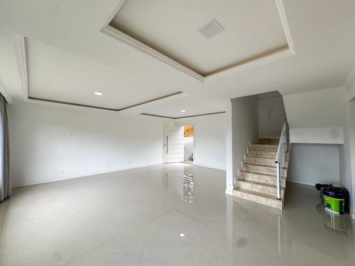 Com 165 m² de área construída, o imóvel possui um projeto bem distribuído e ambientes amplos. No primeiro pavimento, a casa conta com sala em dois ambientes com excelente entrada de luz natural, integrada à cozinha americana planejada e já mobiliada. Neste andar também há lavabo e uma área de serviço funcional.