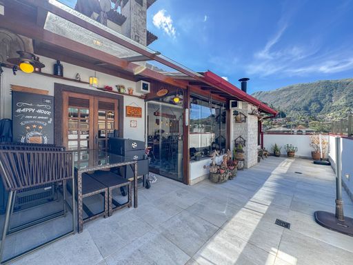O terraço é generoso e ensolarado, ideal para momentos de lazer e contemplação.