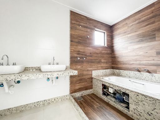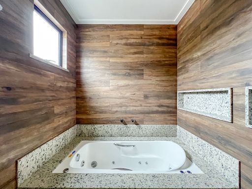 O imóvel se dispõe de 3 suítes sendo 1 com banheira de hidromassagem e espaço para planejar armários/closet, sala que pode tranquilamente se dividir em 2 ambientes pelo seu amplo espaço, banheiro social, cozinha quadrada, área de serviço e amplo espaço externo com pia de apoio e jacuzzi.