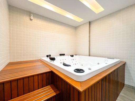 O condomínio conta com jacuzzi aquecida, sauna a vapor e salão de festas. Elevador, garagem e portaria.