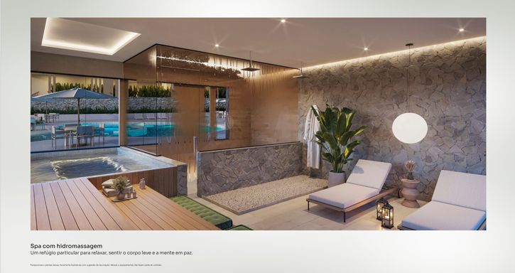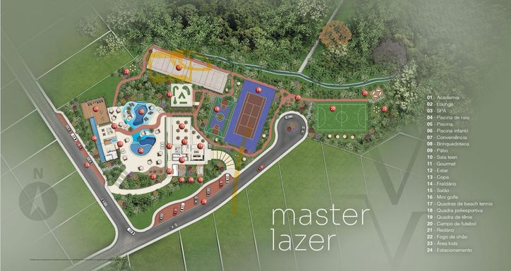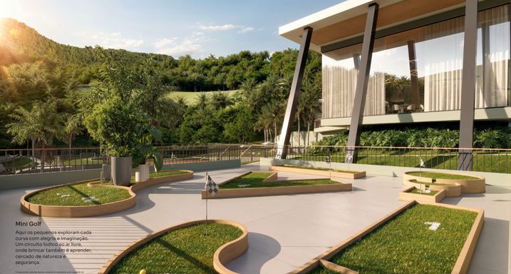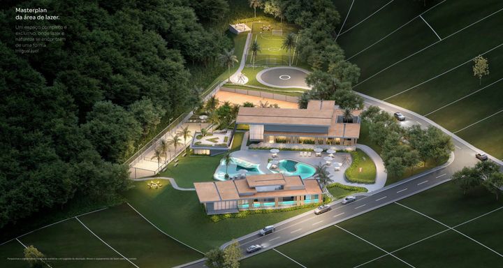 O condomínio entrega uma estrutura de lazer e segurança de alto padrão, pensada para toda a família. Entre os diferenciais estão piscina adulto, infantil e de raia, spa e sauna, academia moderna, espaço gourmet com salão de festas, salão de jogos, espaço kids, mini golfe, quadras de tênis, beach tennis, quadra poliesportiva e campo de futebol. A segurança é completa, com portaria 24 horas, acesso por Face ID e monitoramento por câmeras.